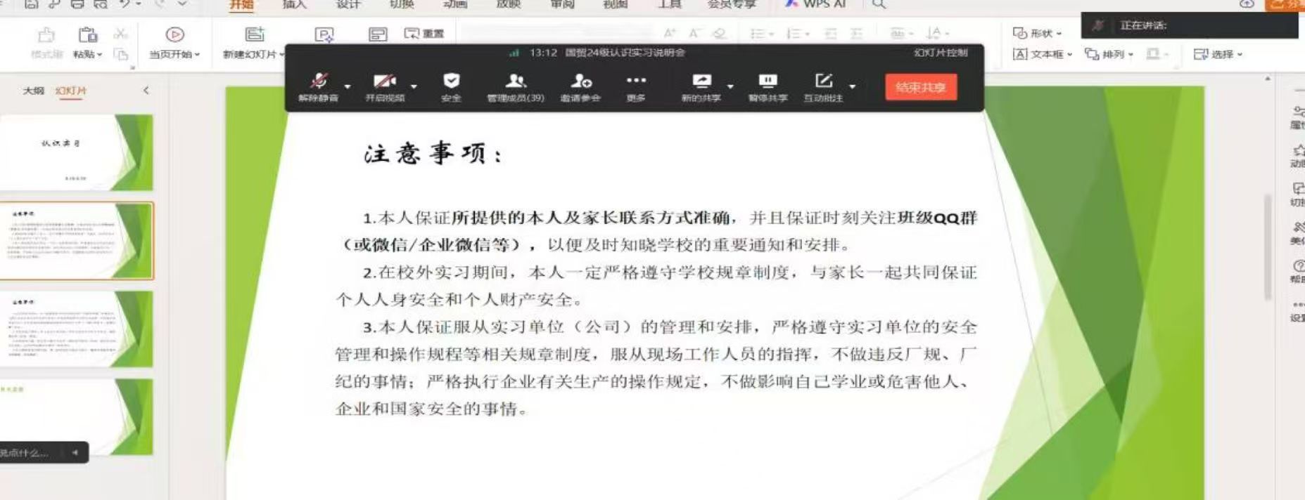 本次认识实习构建起完备的材料审核与过程管理体系。学生需提前提交《校外认识实习申请书》《2024级学生认识实习安全承诺书》等材料,从源头确保认识实习流程合规、责任落实到人。过程管理中明确每周汇报、请假报备等刚性要求,督促学生自觉恪守法律法规与企业规章,杜绝各类违规行为。