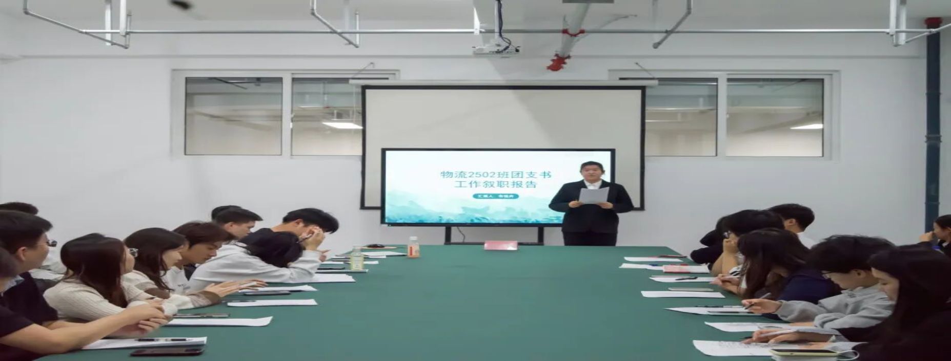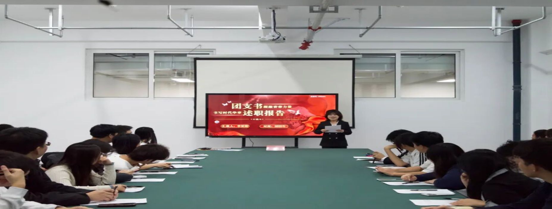 会上,各班团支书、班长依次登台述职,围绕工作开展举措、学期总结复盘、未来规划展望三个方面梳理工作脉络,分享班级管理中的创新思路,充分展现出青年学生骨干的责任担当与务实作风,切实达到以述职促提升、以交流促育人的良好效果。