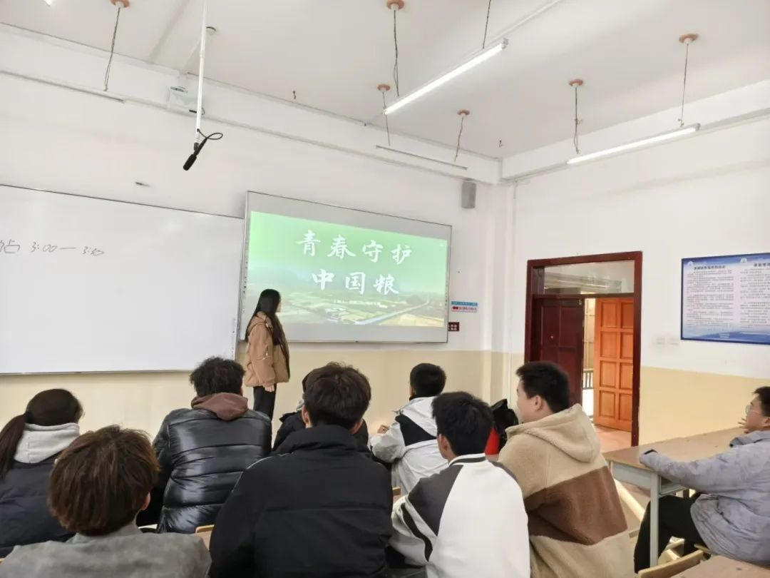 活动伊始,各团支部书记首先向同学们详细阐述粮食安全的现状,以及粮食安全隐患。通过组织同学们观看粮食生产纪录片,了解粮食从田间到餐桌的全过程,深刻体会到粮食来之不易,牢固树立同学们节约光荣、浪费可耻的思想意识。