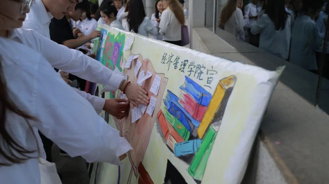 全体毕业生党员前往图书馆门前,在留言板上挥笔书写。他们用一句句真挚的文字,传递着坚定的理想信念,写下未来的奋斗目标,倾诉着浓浓的爱党情怀。有的党员写道:“愿以青春之我,创建青春之国家,在新的岗位上践行入党誓词”。这些文字不仅是党员精神的传承,更为学院留下了宝贵的红色印记与奋进力量,激励着后续的党员学子们接续奋斗,砥砺前行。