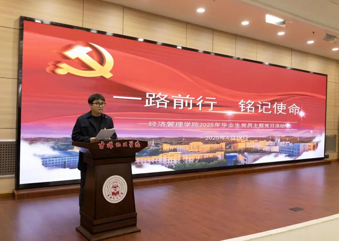 为全面贯彻落实党的创新理论,深化青年党员思想淬炼,筑牢信仰之基、补足精神之钙,引导毕业生党员在时代浪潮中勇担使命、砥砺前行,以踔厉奋发之姿投身国家建设新征程,6月19日,经济管理学院开展2025届毕业生党员“青衿志华年,挺膺新时代”主题党日活动。学院党委副书记周桂莲、各党支部书记和全体毕业生党员参加此次活动,活动由学生第三党支部书记王宇晨主持。