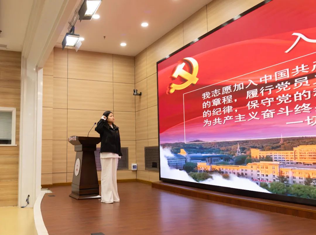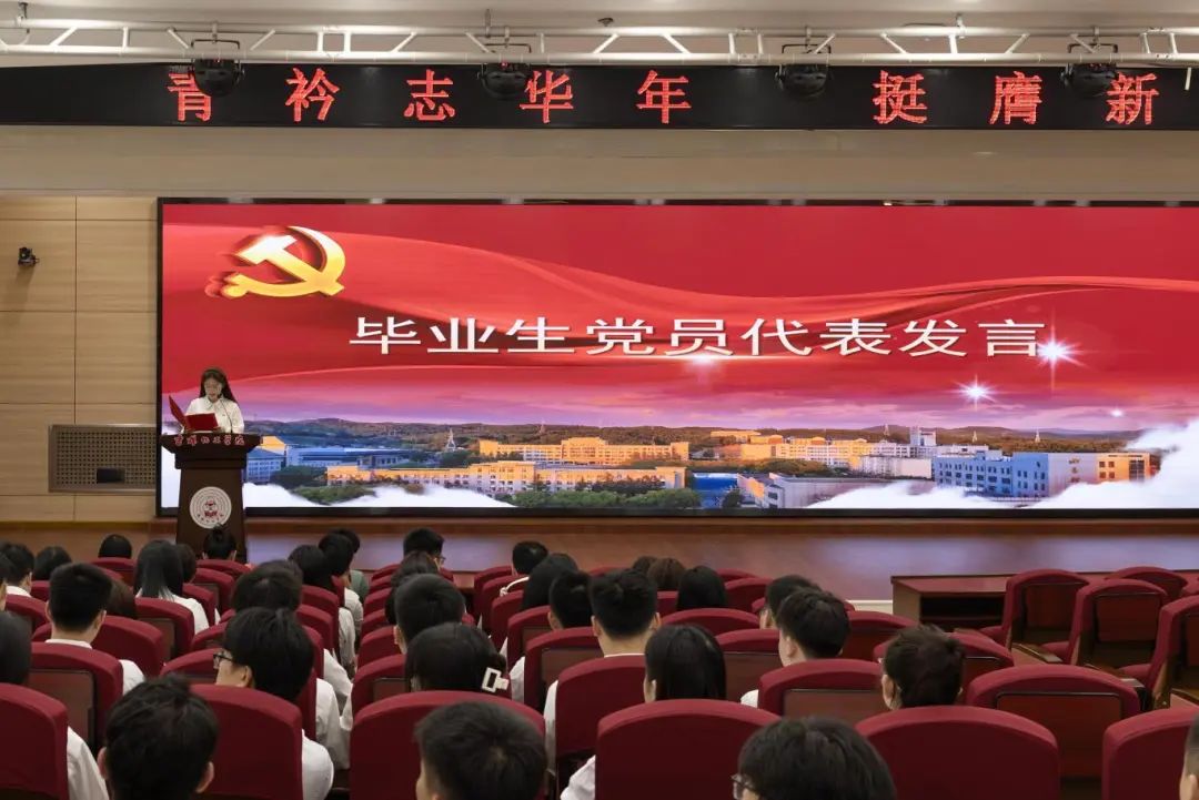 活动伊始,毕业生党员代表潘雨矇同志上台发言。她深情回顾了大学四年的成长历程,从初入校园时的懵懂,到在党组织培养下的逐渐成熟,每一段经历都饱含着奋斗与收获。同时,她也对未来的人生征程充满期待,立志在新的岗位和环境中,继续践行党员使命。她的发言,不仅是个人成长的分享,更展现出毕业生党员积极向上、勇担使命的精神风貌。