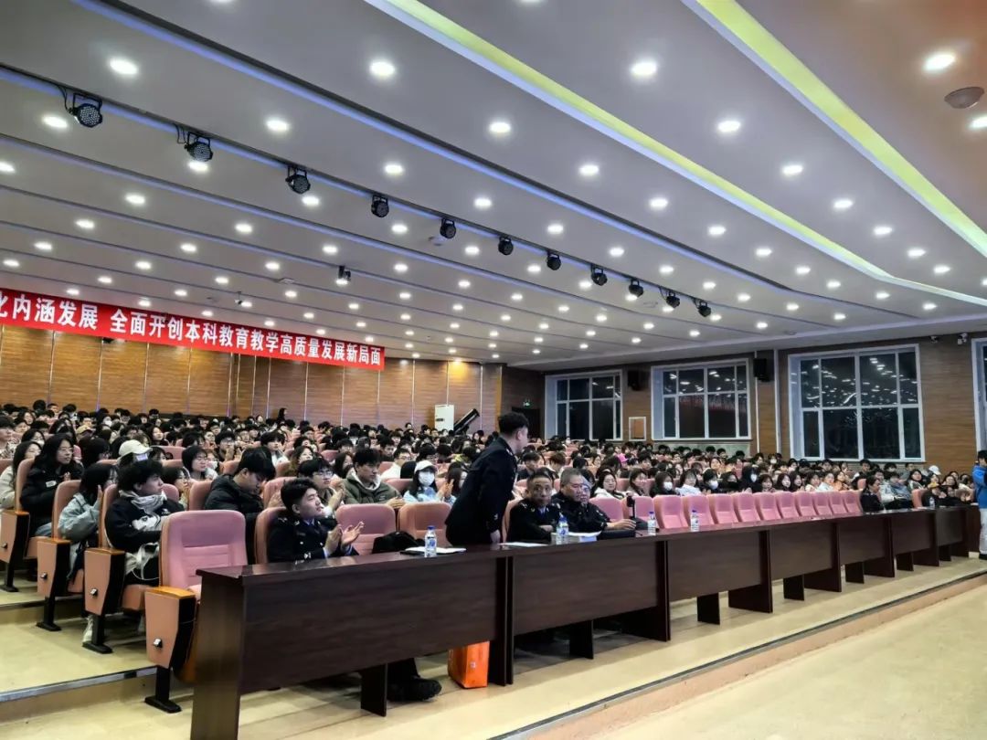 2024年3月18日,一场别开生面的大学生法治教育大会在第二教学楼报告厅隆重举行。本次大会由学校安全保卫处和经济管理学院共同承办,以电信诈骗、网络安全及禁毒宣传教育为主题,通过深入讲解与互动体验,进一步提升大学生的法治观念,强化自我保护能力,为构建安全、和谐、文明的校园环境奠定坚实基础。
