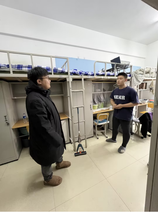 为优化假期学生宿舍卫生环境,切实做好学生假前安全离校工作,2024年1月8日,经济管理学院各年级辅导员,在玉峰社区11公寓、13公寓;领航社区8公寓;融创社区1公寓、3公寓开展假前寝室走访工作。