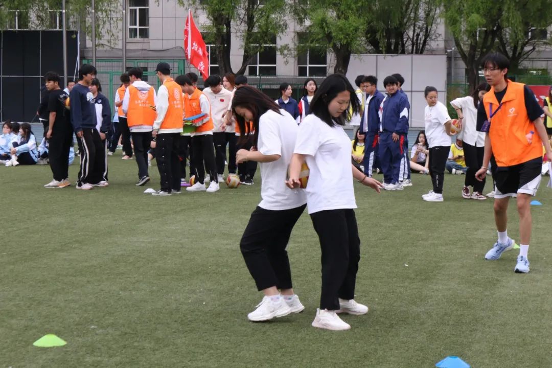 听到预备的口号,队员们早已迫不及待地背对背夹好了球,默契配合的身影彰显出团结的重要性。