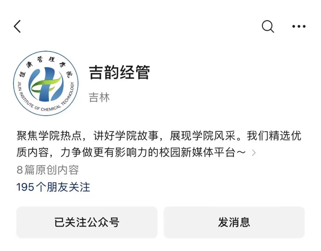 “吉韵经管”是经济管理学院官方微信公众号,致力于为广大师生、校友以及关注学院发展的各界人士提供及时、全面、深入的学院动态和信息。丰富多彩的社团活动、激情四溢的体育竞赛、精彩纷呈的文艺表演,展现着经管学子的青春活力与多才多艺。此外,行业动态、就业信息等实用内容也一应俱全,为您的职业规划和未来发展提供有力支持。