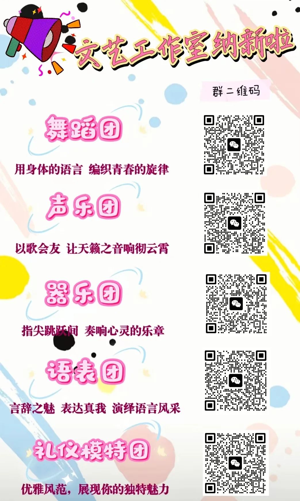 经济管理学院文艺工作室面向学院2024级全体萌新招募舞蹈团、声乐团、器乐团、礼仪模特团成员。无论专业,无论班级,只要热爱舞台,有才艺你就来!欢迎2024级萌新扫码报名~