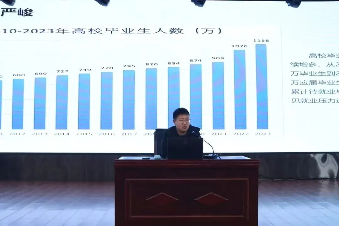 会议伊始,辅导员老师围绕就业形势、三方协议与劳动合同的异同、签约及解约流程、三方协议填写注意事项以及推荐表申请和成绩单打印等方面进行详细讲解,为毕业生们提供了全面而详细的指导,帮助毕业生认清就业形势,明确就业流程。老师们结合学院近几年的考公考研人数、录取情况进行了针对性分析,鼓励同学们找到适合自己的目标,保持良好的心态,积极的面对就业和考研。