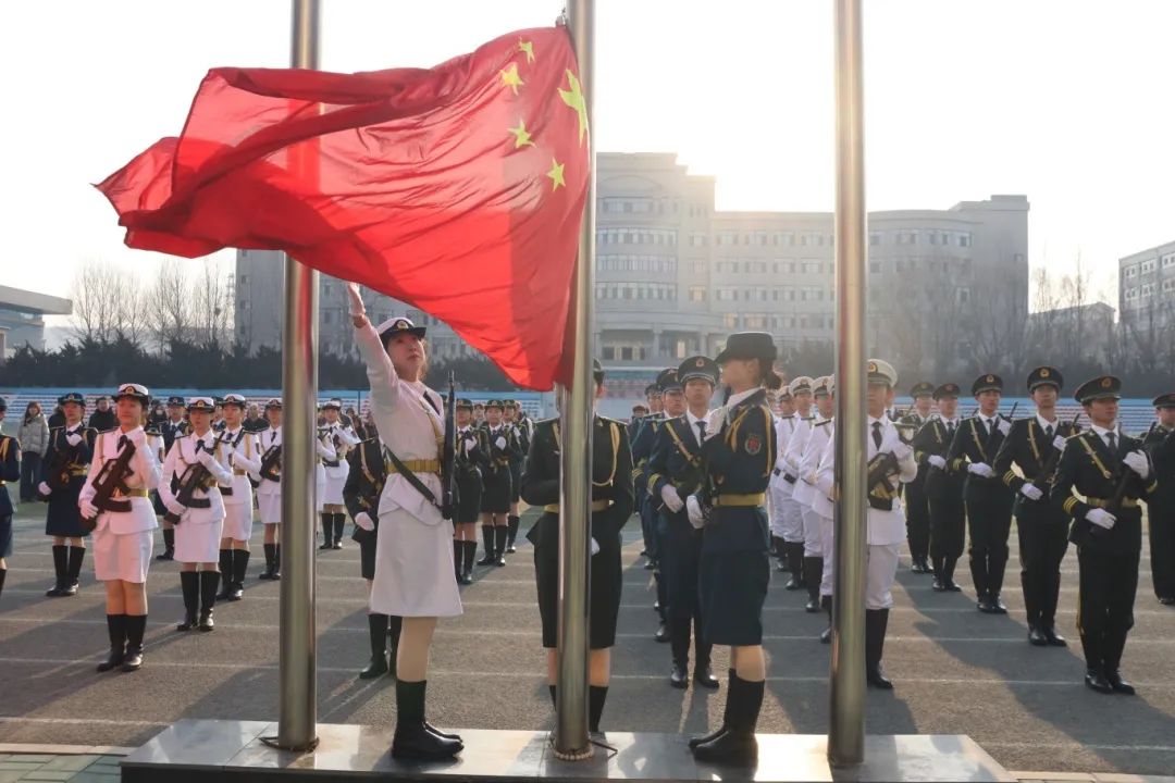 七点二十分,升旗仪式开始。国旗护卫队成员以坚定有力的步伐走向国旗台。伴随激昂的《义勇军进行曲》,五星红旗在晨光的映照下缓缓升起,飘扬在校园的上空。
