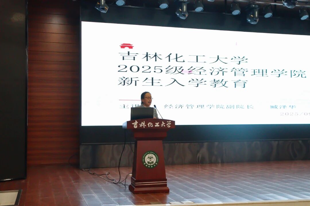 为帮助25级新生快速完成从高中生到大学生的角色转变,清晰规划大学阶段的学习与成长路径,9月19日,经济管理学院在二教报告厅举行2025级新生入学教育大会。学院党委副书记周桂莲、副院长臧泽华出席会议,25级新生以及新生助理班主任参加会议。会议由学院团委书记、25级年级辅导员王宇晨主持。