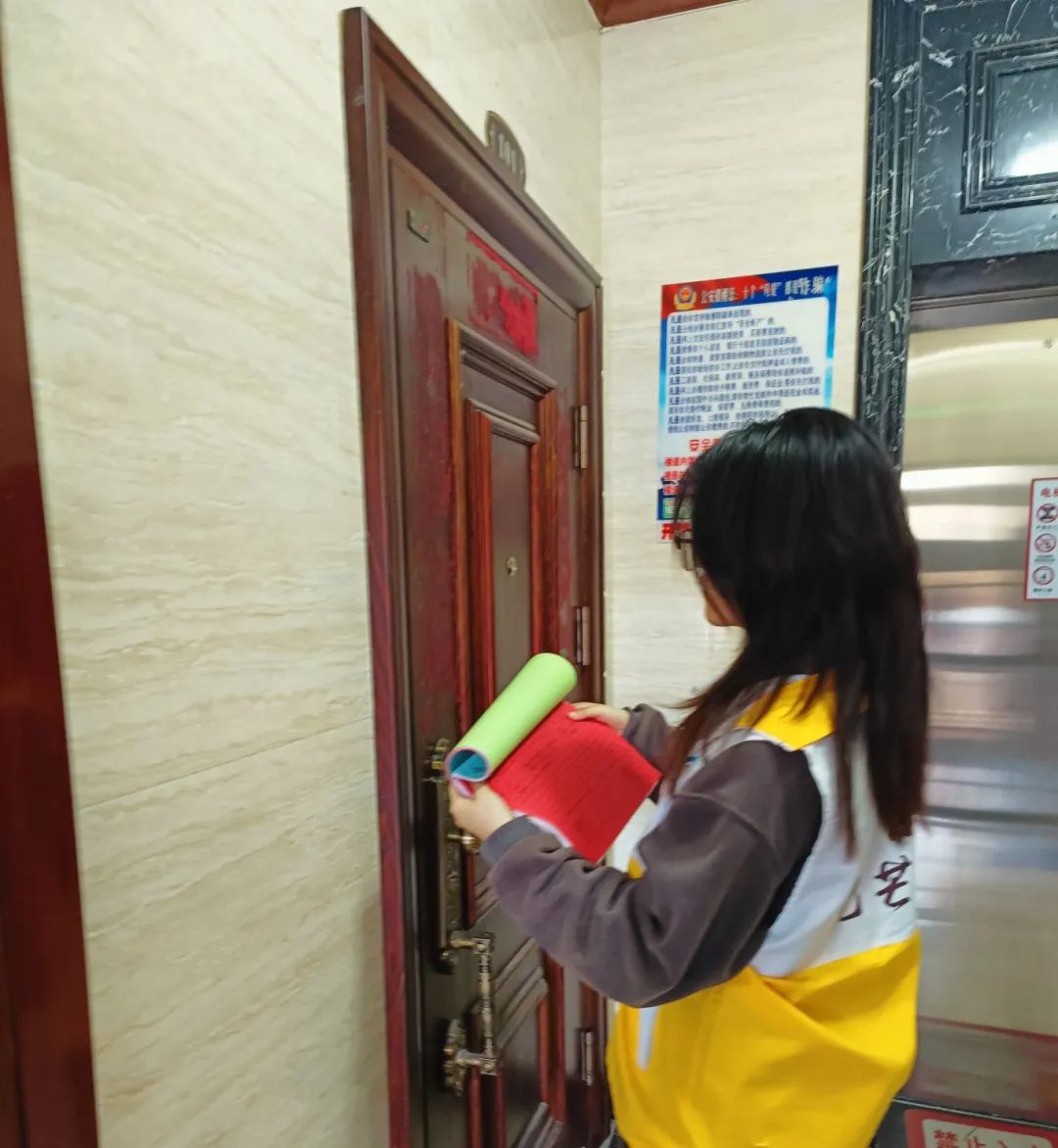 与此同时,志愿者在社区向来往居民普及防范诈骗知识,提高居民法律意识与安全防范思维。志愿者与网格员一起投入到走访联系居民的工作中,通过逐门拜访对照户籍册,将居民情况如实登记表格。
