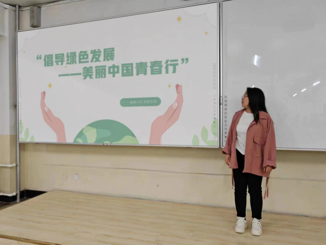 活动伊始,各团支部书记对本次团日活动主题进行了阐述,并组织学习了习近平总书记关于生态文明与绿色低碳发展的重要论述。同学们对习近平总书记所提到的“像保护眼睛一样保护生态环境,像对待生命一样对待生态环境。”这一理念留下了深刻印象。