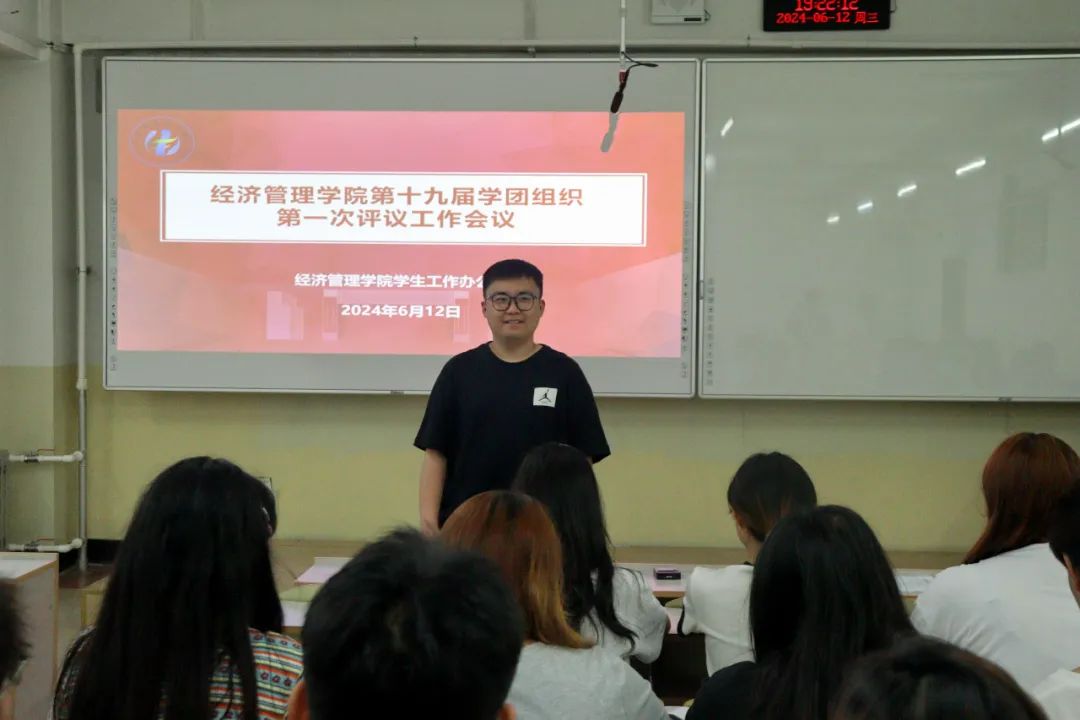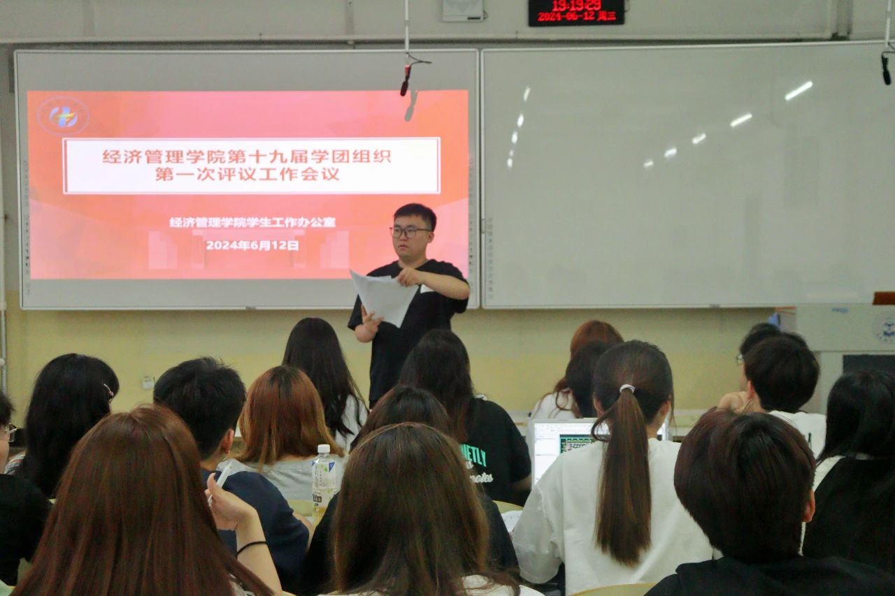 为进一步加强学院学团队伍建设,促进学团组织成员自我提升,提高学团组织的工作热情,经济管理学院于2024年6月12日在二教409教室召开“第十九届学团组织第一次评议”工作会议,本次会议由经济管理学院学团组织指导教师王宇晨主持,第十九届学团组织各部门负责人参加会议。