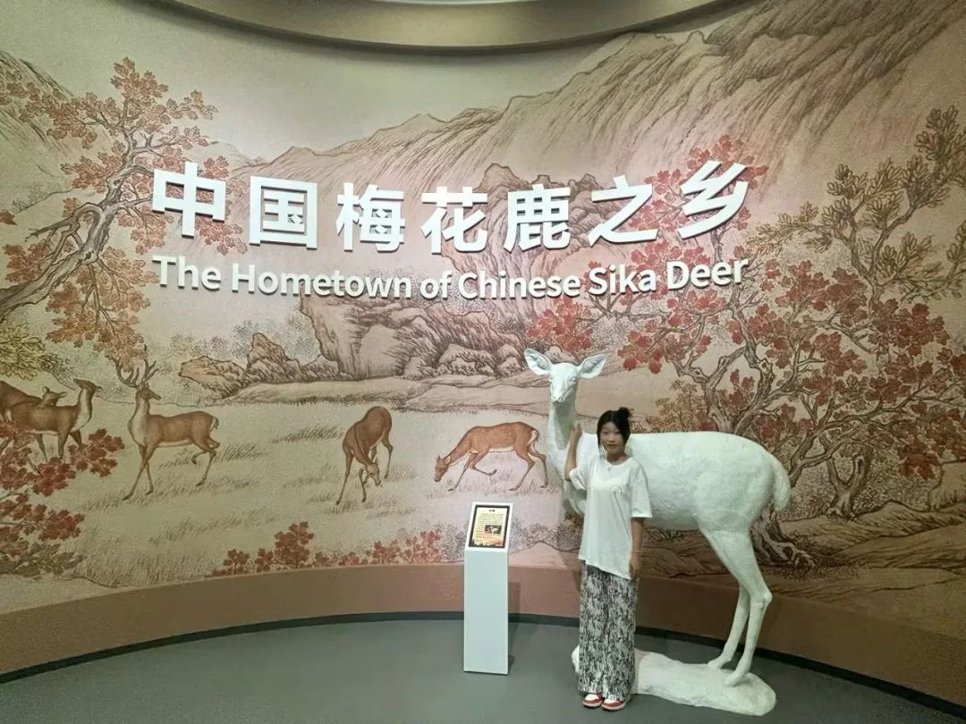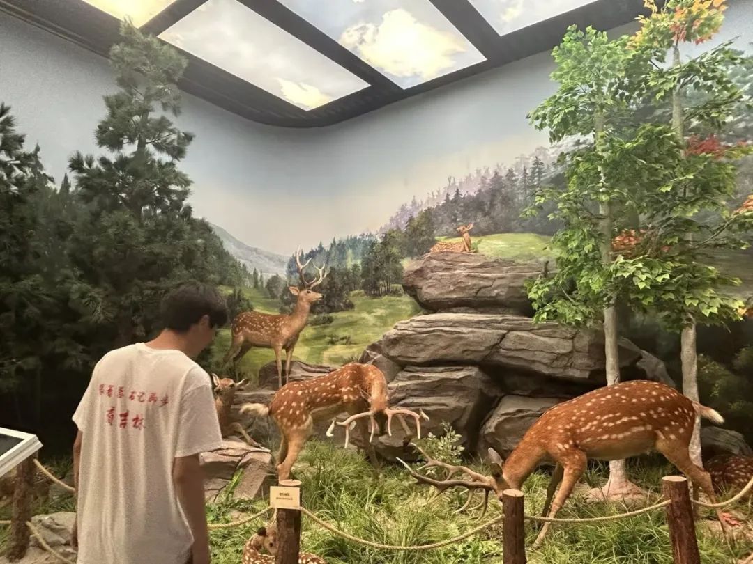科技强国青年观察团的成员们带着对自然与文化的敬畏之心,前往了中国双阳梅花鹿博物馆,踏入博物馆内,一尊尊栩栩如生的梅花鹿雕塑映入眼帘,它们或低头饮水,或悠然漫步,仿佛将自然界的灵动与和谐完美呈现于馆内空间之中。这些雕塑不仅展现了梅花鹿优雅的身姿,更传递了人与自然和谐共生的美好愿景。随着参观的深入,成员们被馆内丰富多样的展品深深吸引。历史悠久的制作鹿产品的店铺场景被精心复原,从古老的加工工具到精美的鹿产品,每一件展品都承载着匠人的智慧与汗水,诉说着梅花鹿产业的悠久历史和独特魅力。尤为引人注目的是馆内那面挂满梅花鹿鹿角的墙壁。鹿角形态各异,在灯光的照耀下更显壮观与神秘。此次中国双阳梅花鹿博物馆之行,不仅让观察团成员们领略了梅花鹿文化的独特魅力,更让他们深刻体会到了传统工艺与现代科技的结合对于文化传承与创新的重要意义。