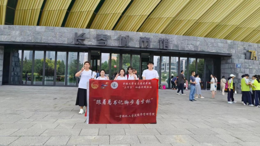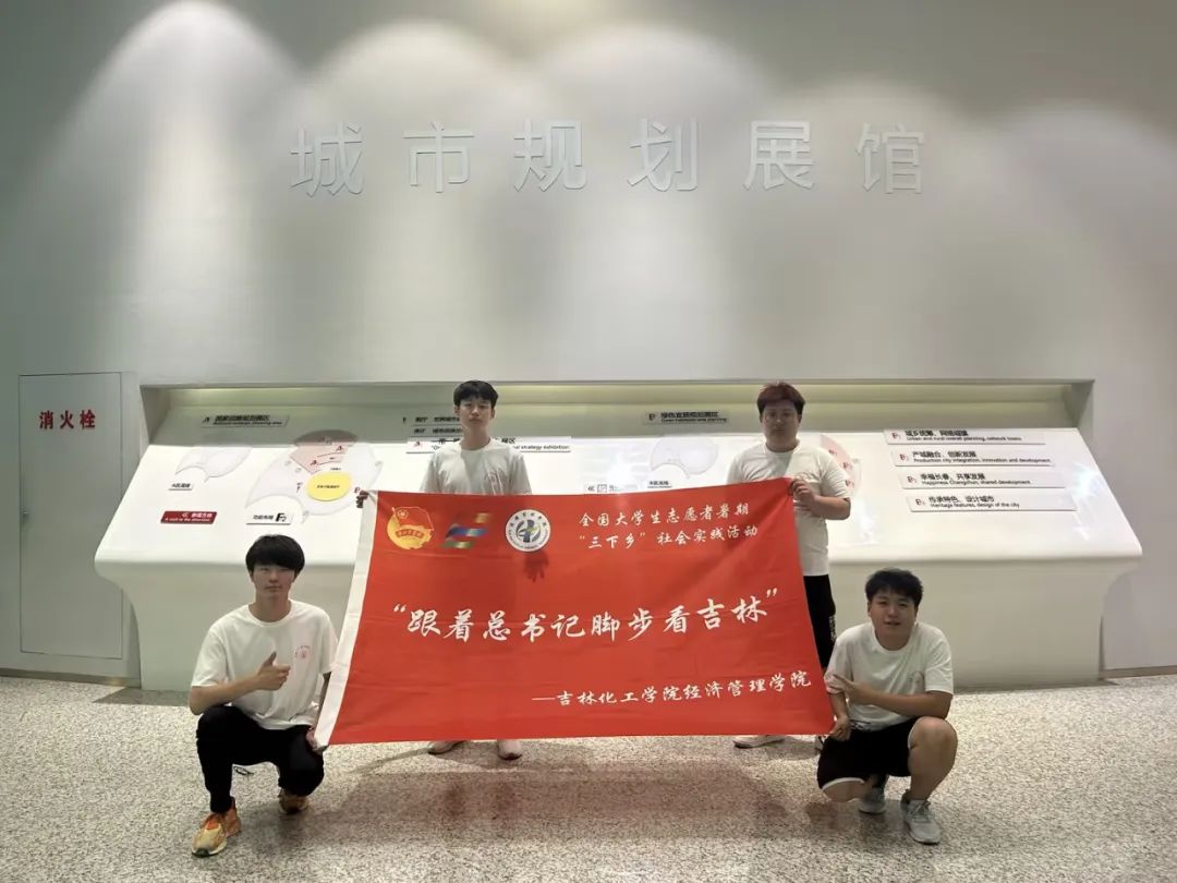 为深入学习宣传党的二十大精神,学习贯彻习近平总书记视察吉林重要讲话重要指示精神,聚焦吉林“一主六双”高质量发展战略,引导全国大学生响应“创业奋斗 就’在吉林”的青春号召,引导青年大学生在社会课堂中“受教育、长才干、作贡献”,在吉林上好与现实相结合的“大思政课”。按照团省委工作安排,吉林化工学院经济管理学院薪火相传实践团、“同心共吉,丹心筑梦”理论普及宣讲实践团和科技强国青年观察团在指导教师霍霄的带领下,于2024年暑假赴长春规划展览馆,东北沦陷史陈列馆,长春国际汽车公园,长春世界雕塑公园,长影旧址博物馆和吉林青年运动史馆等地开展“跟着总书记脚步看吉林”三下乡社会实践活动。