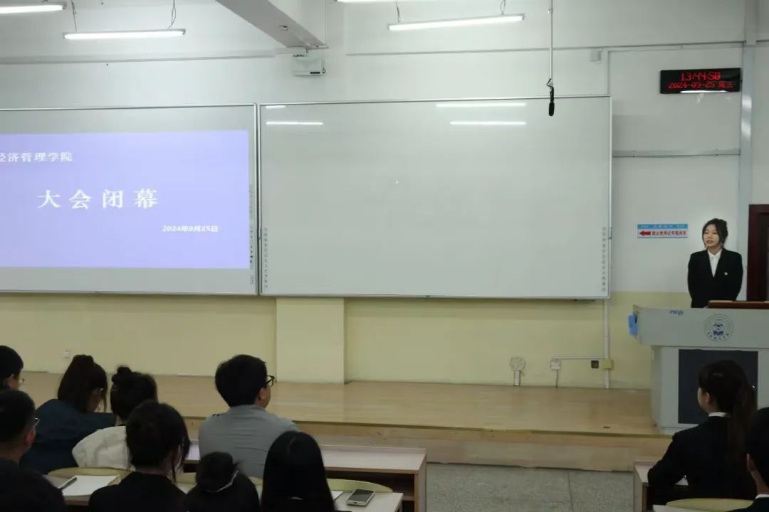 按照《中华全国学生联合会章程》和《吉林化工学院学生会章程》规定,经学院党委、校学生会批准,经济管理学院于2024年9月25日在第二教学楼110教室召开吉林化工学院经济管理学院第五次学生代表大会,学院学生工作办公室副主任郭弘、团委副书记钱志欣、辅导员王宇晨、霍霄、邢崇志、李祎倓出席会议,学院全体学生代表参加会议。会议由第十九届学团组织成员李泓蕾主持。