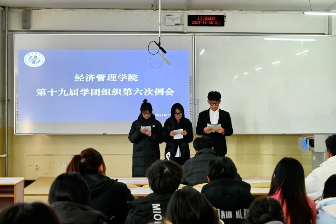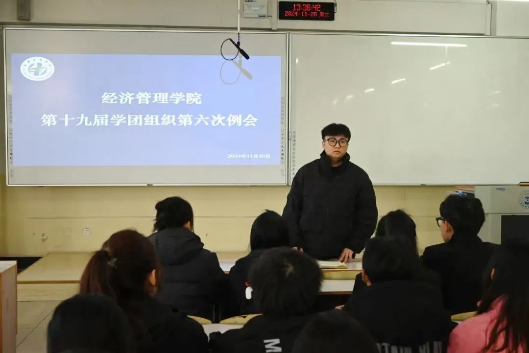 为进一步开展学团组织建设工作,提高各组织的工作效率和质量,经济管理学院于2024年11月20日在二教211教室召开经济管理学院第十九届学团组织第六次工作例会。本次会议由学院分团委副书记(学生兼职)李泓蕾主持,学团组织指导教师王宇晨出席、第十九届学团组织全体成员参加会议。