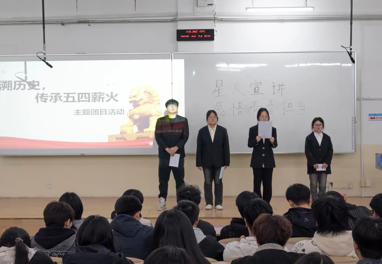 各团支部特邀星火宣讲团深入班级开展主题宣讲。宣讲团成员讲述新民主主义革命时期青年先辈的英勇事迹,展现社会主义建设时期青年群体的无私奉献精神,以及新时代青年先锋的感人事迹与突出贡献。此次宣讲活动旨在让团员青年认识到自身使命,激励团员青年以榜样为引领,砥砺前行。